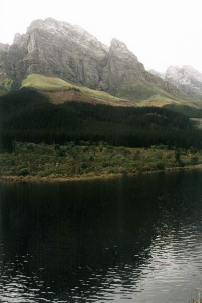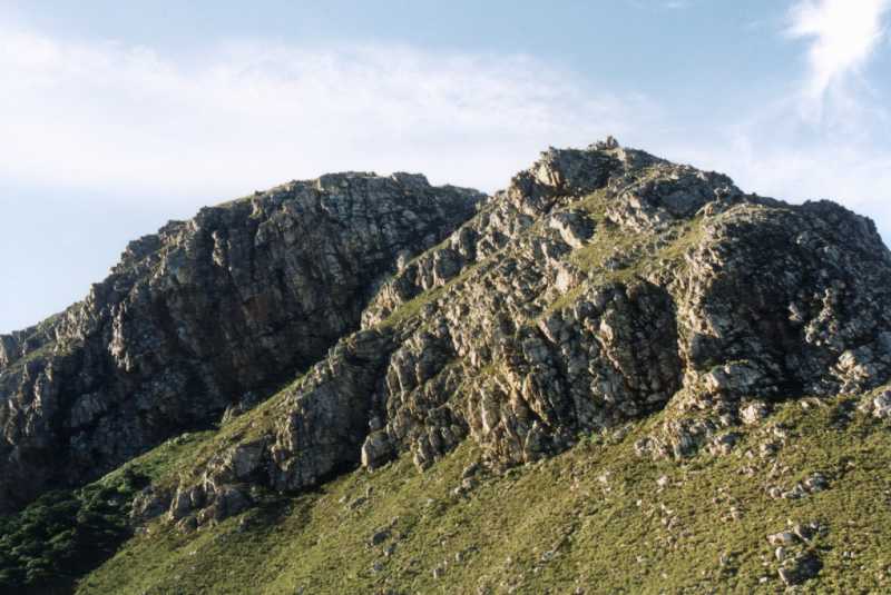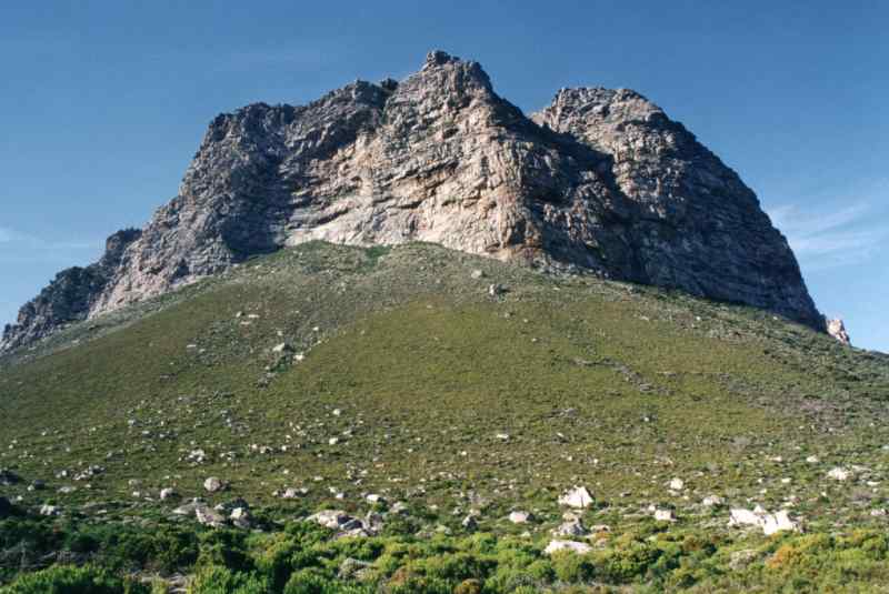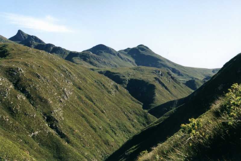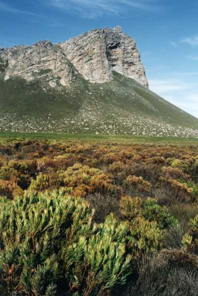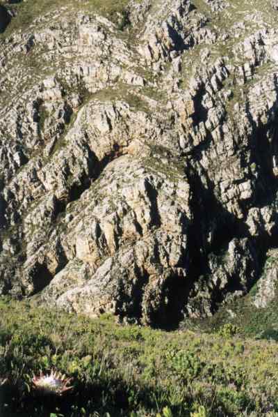 Leopards Kloof cliffs and Protea above Harold Porter Botanical Garden