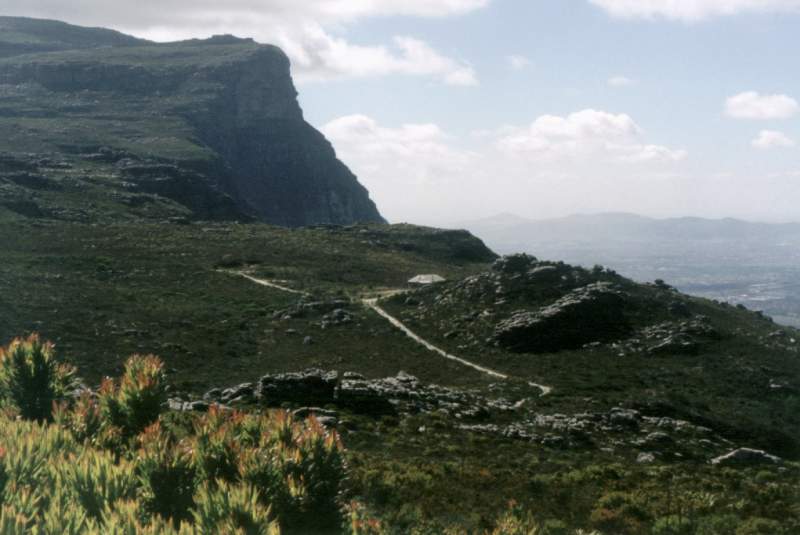 DeVilliers dam wall and hut on Back Table from Constantia Corner