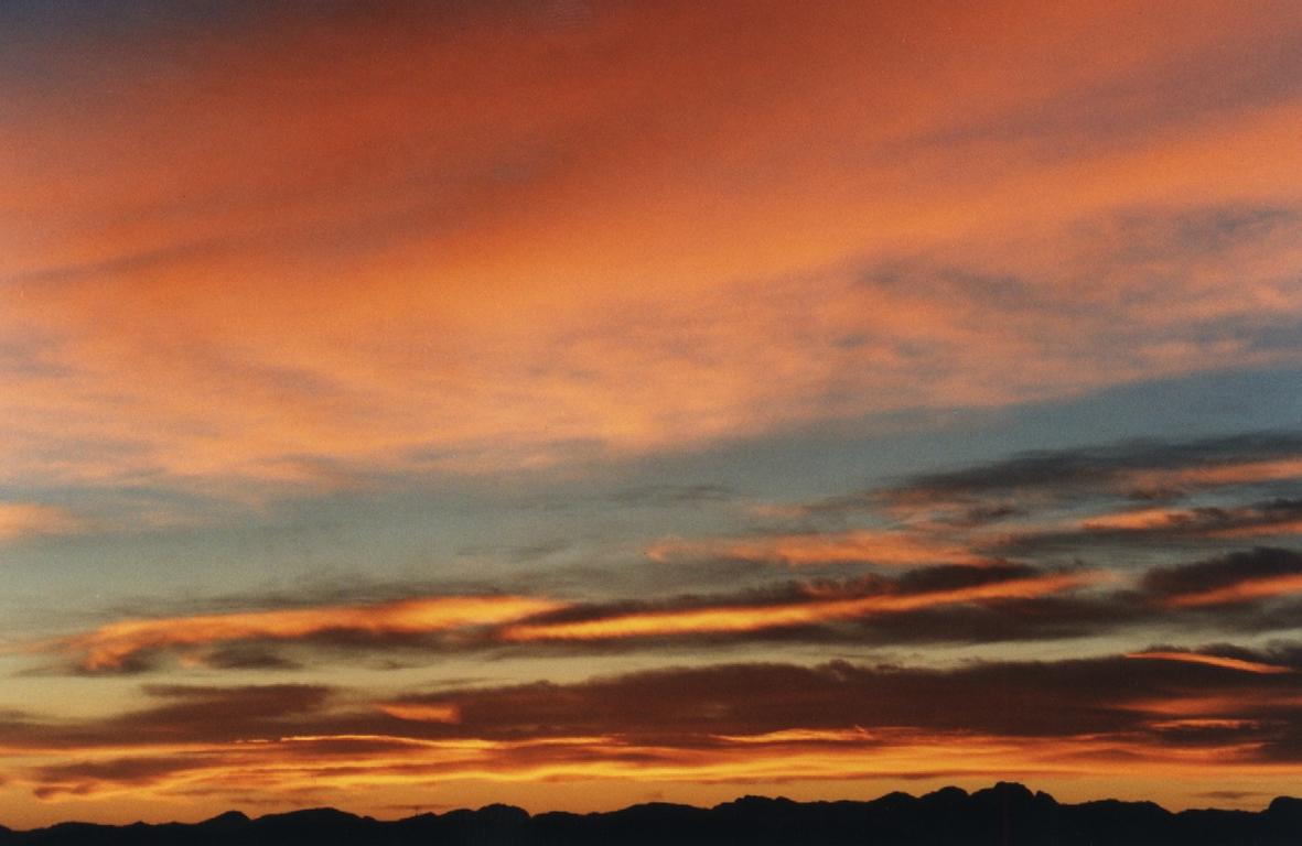Sunrise on layered cirrus above mountains -