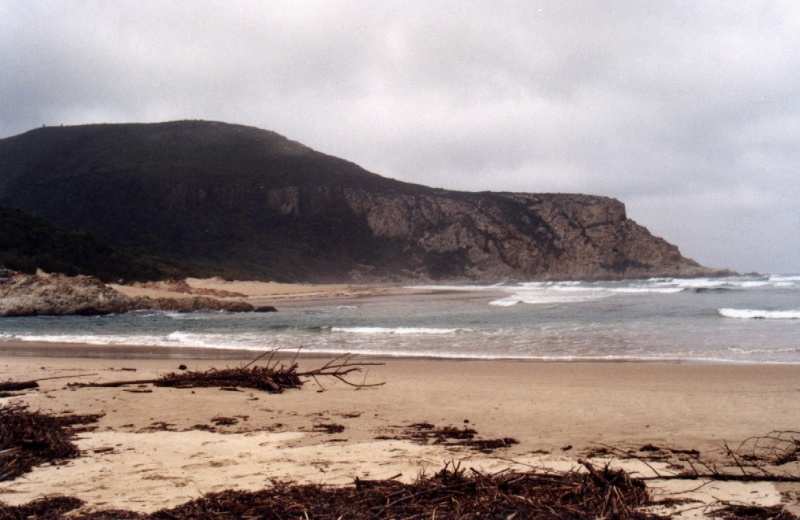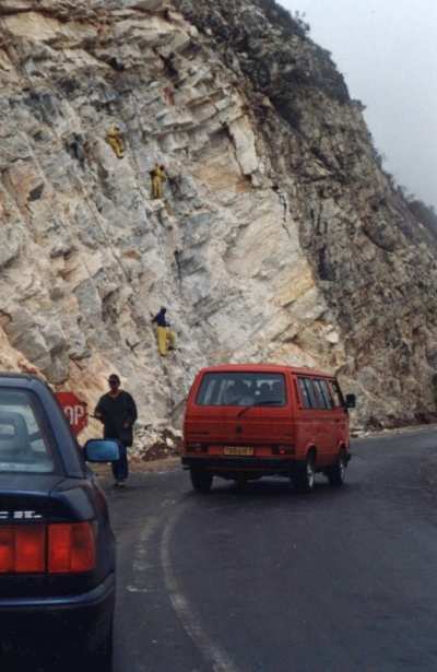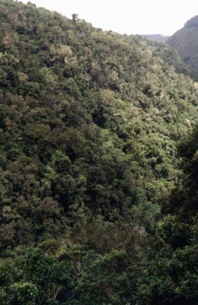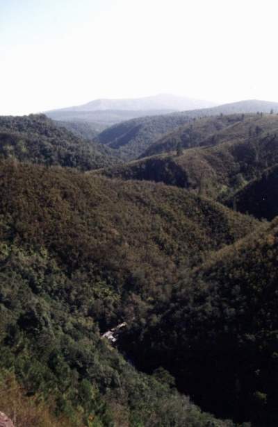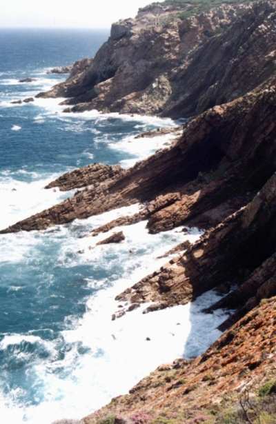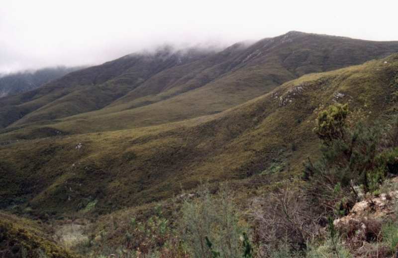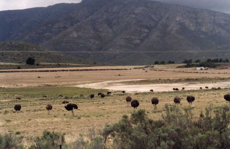 Fynbos in Robinson pass, Outeniqua mountains, ostriches with folded mountain