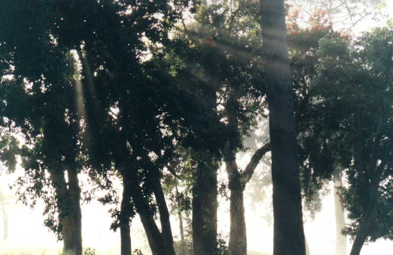 Mist and trees, with sunbeams