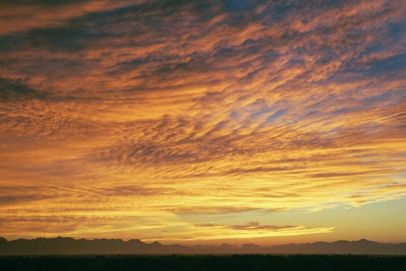Sunrise on cirrus over mountains and Cape Flats - Jan '05