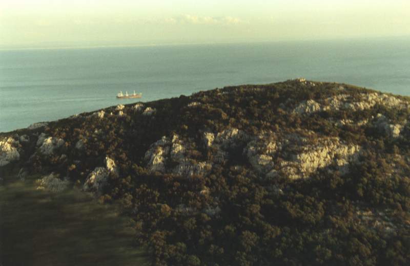 Rocky hillside and sea
