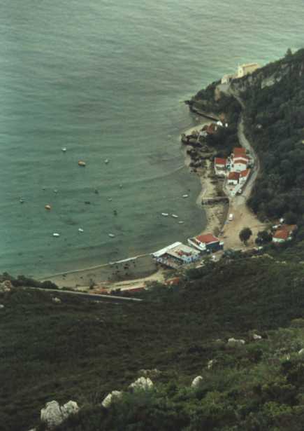 Beach with rocky island and bay south east of Lisbon